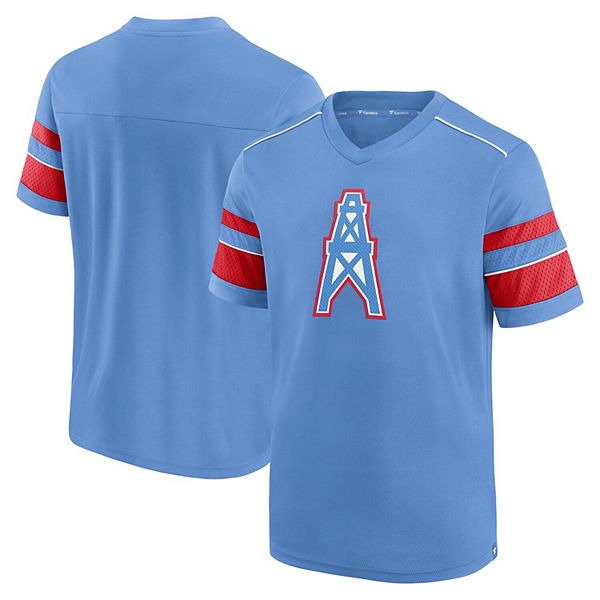 Men S Fanatics Branded Light Blue Houston Oilers Textured Throwback Hashmark V Neck T Shirt